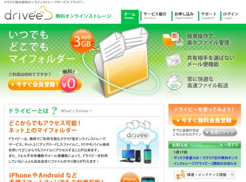 クラウド型の無料オンラインストレージ ドライビー無料で3GBのストレージが使えるサービスです。LinuxからならFuseを使っても良いかもしれませんね。